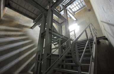 7.説明終了後、非常用階段120段(建物で7階程度)をのぼり、1F管理棟まで戻ります。