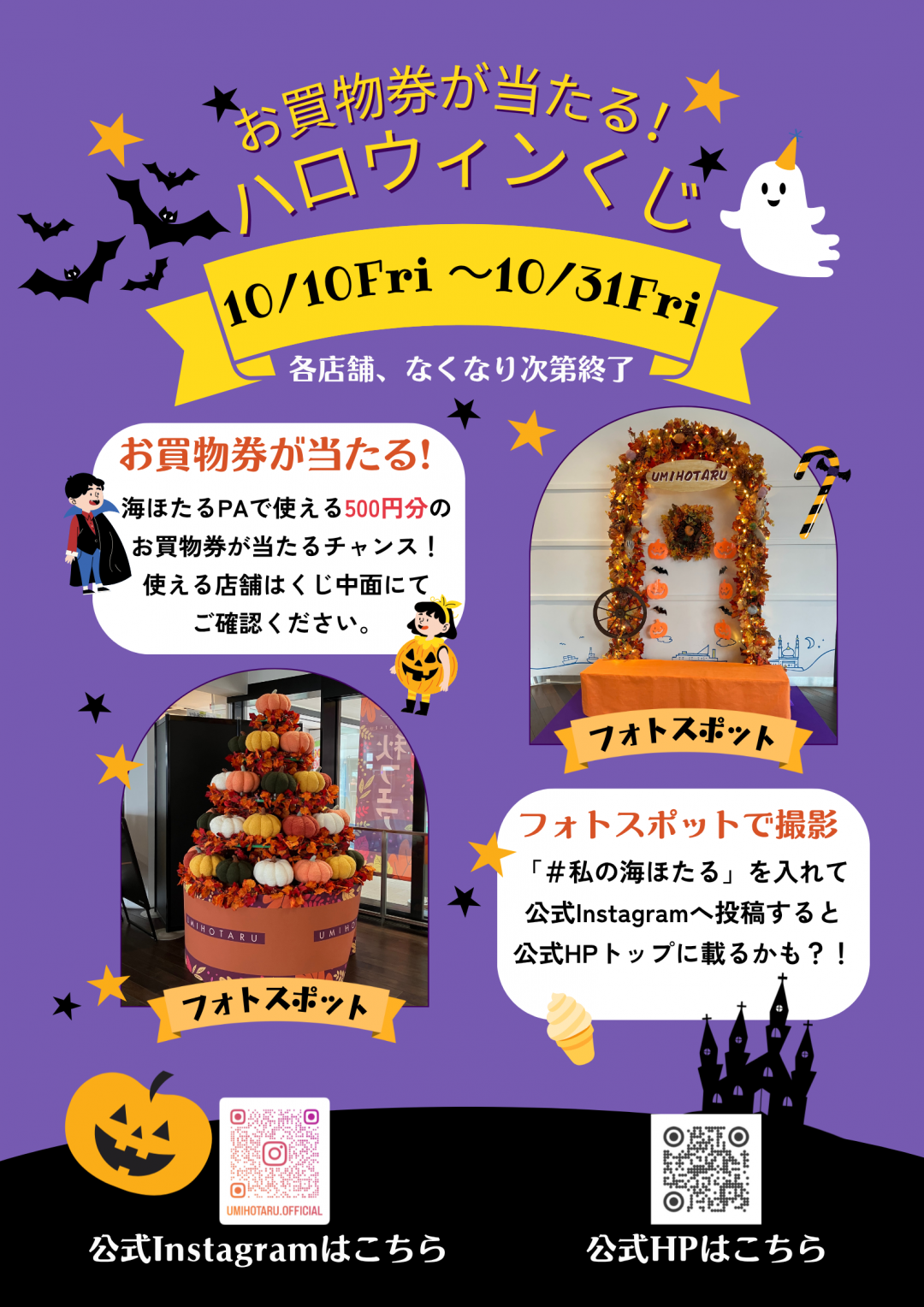 日頃より海ほたるPAをご利用いただいているお客様に感謝を込めて、ハロウィンくじを実施いたします!